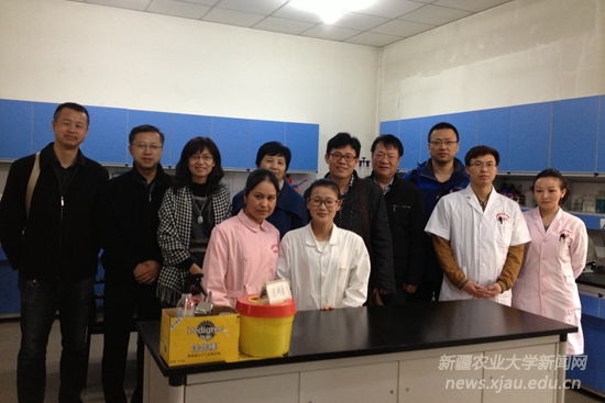 在新疆畜牧科学院兽医所,看望了在该所实习的12名本科学生,兽医所钟旗副所长详细介绍了所里对实习学生的安排,他表示,他们非常尊重实习学生的意愿,愿意在临床上实习的,都安排在兽医所所属的动物医院实习,愿意跟老师做科研的,就安排在各科室实习。钟所长还带领检查组详细参观了学生实习的各科室及实验室的仪器设备,教务处代表学校表达了对实习点的感谢,希望今后能继续加强学院和实习点的合作,培养出更多优秀的学生。