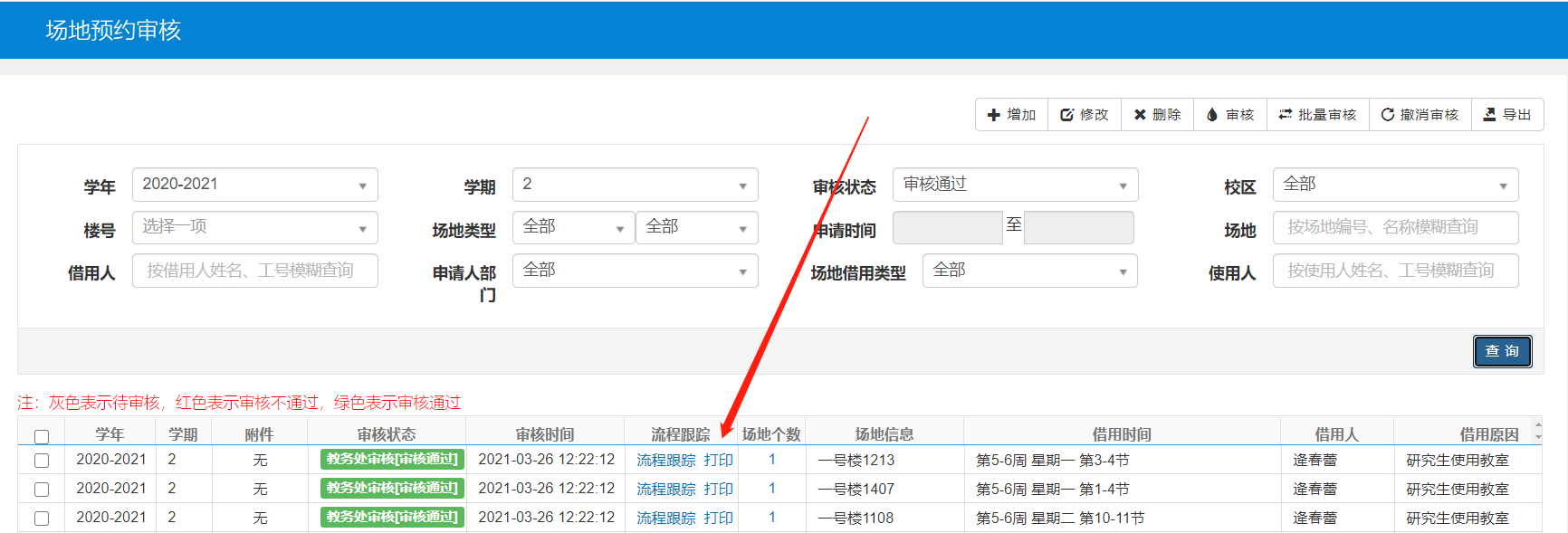 菜单:排课管理-->场地预约管理-->场地预约审核