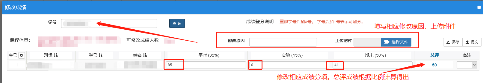 成绩比例按当时报送时的设置。点击右上角提交即可。相应记录在教学班名下即可查询。